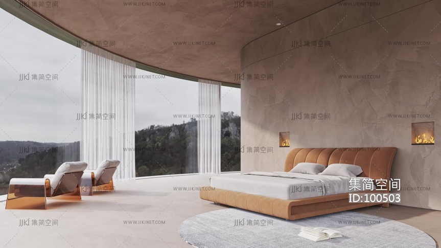 现代客房_双人床_原木客房日式客房双人床3D模型3d模型下载