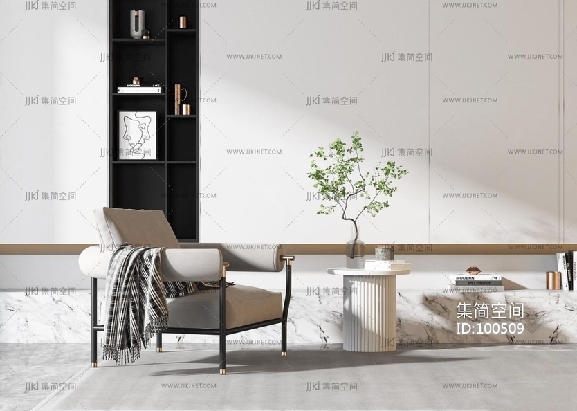 SY02-现代单椅边几组合 3d模型下载 [模型ID:100509]