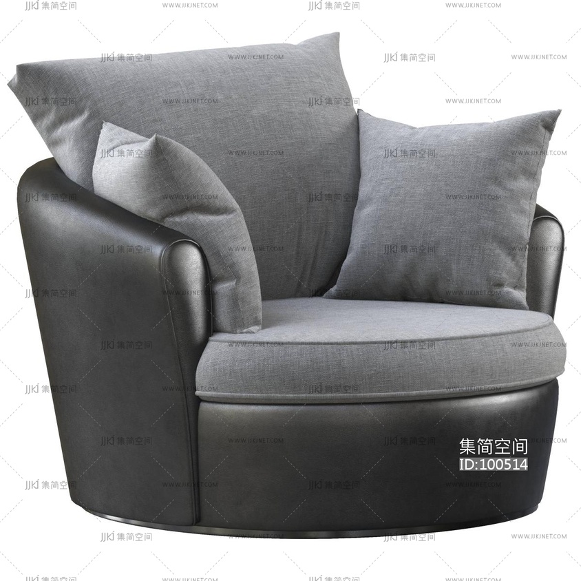 SY07-现代皮革布艺单人沙发 3d模型下载 [模型ID:100514]