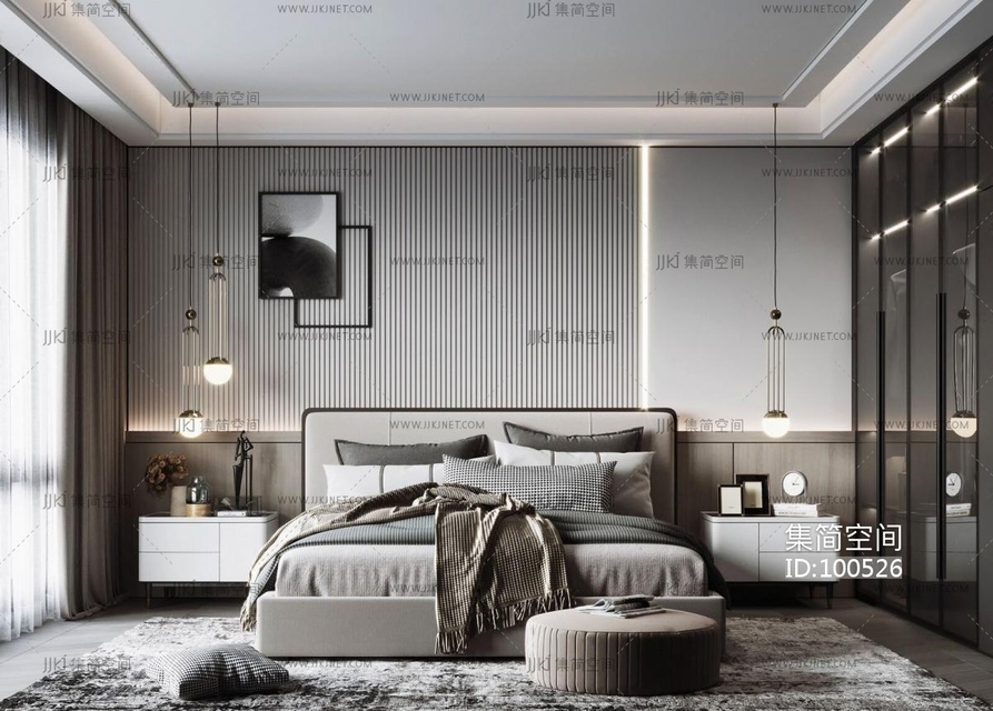 SY016_现代轻奢主卧室 3d模型下载 [模型ID:100526]