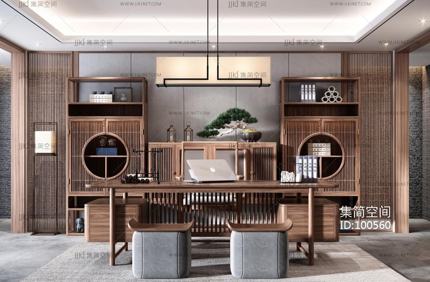 SY015_新中式风格书房 3d模型下载 [模型ID:100560]