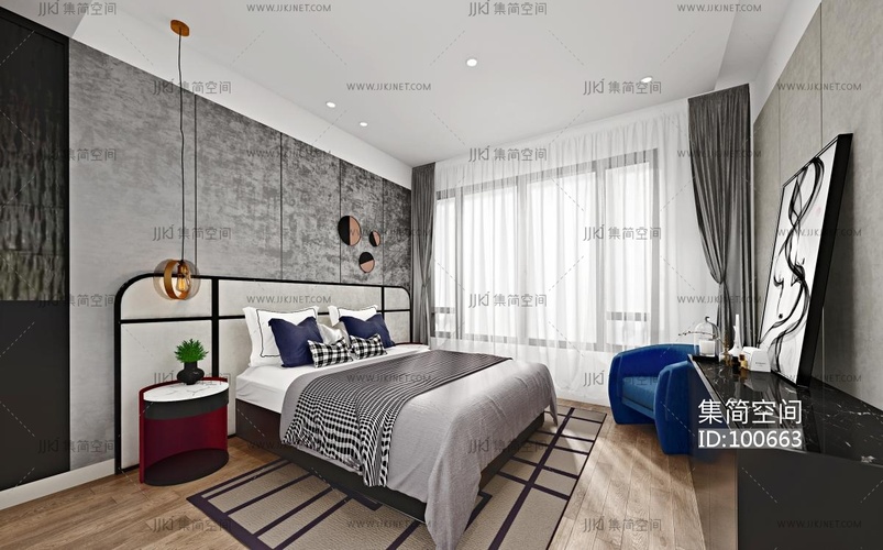 现代卧室主人房 3d模型下载 [模型ID:100663]