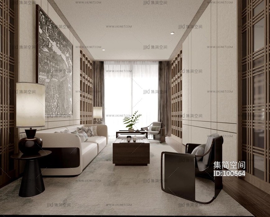 新中式会客厅 3d模型下载 [模型ID:100664]