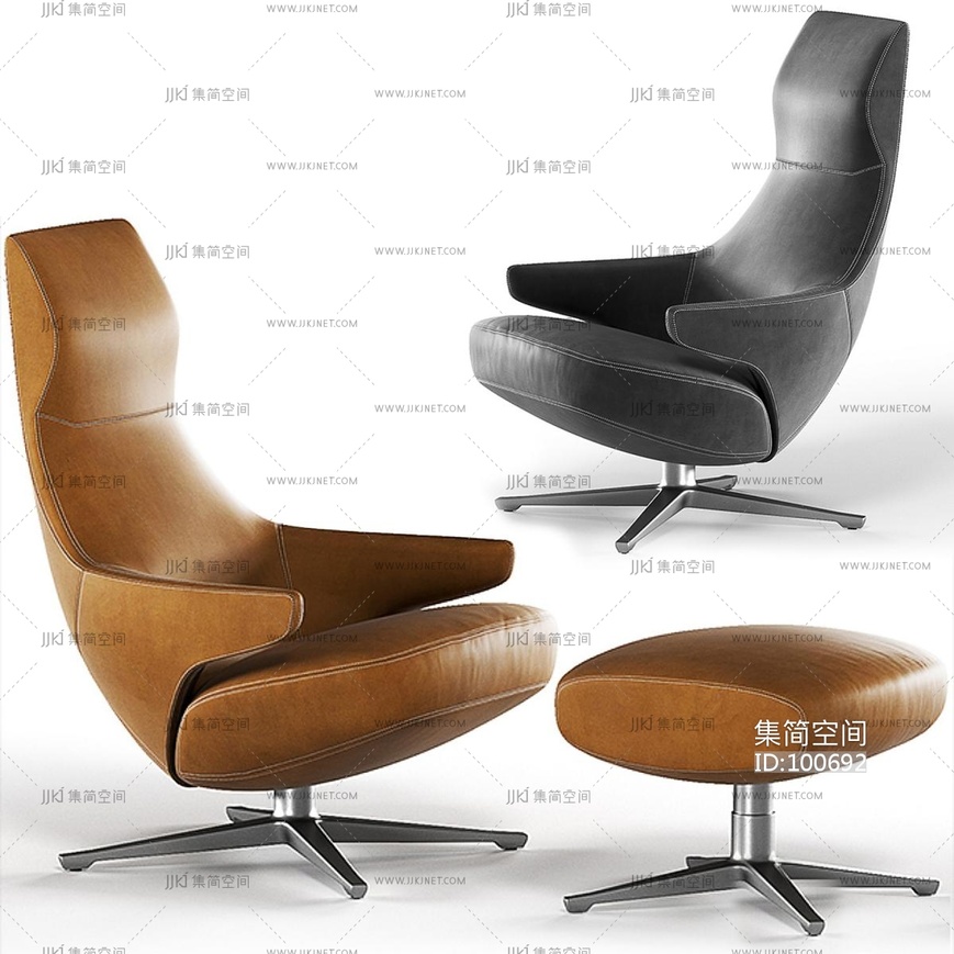13Poltrona Frau 现代休闲椅脚踏组合 3d模型下载 [模型ID:100692]