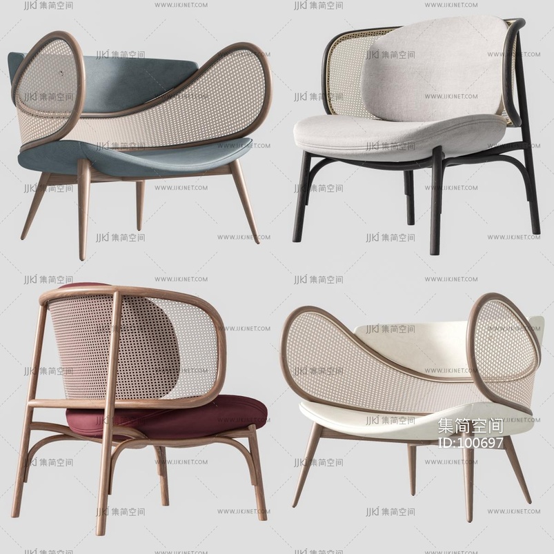 04_现代编藤椅组合 3d模型下载 [模型ID:100697]