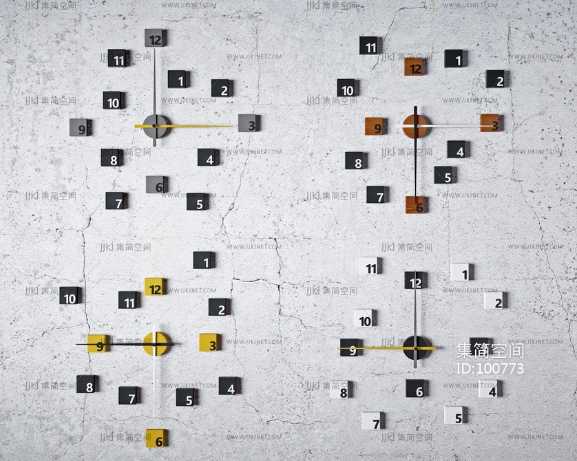 现代方块挂钟,钟表 3d模型下载 [模型ID:100773]