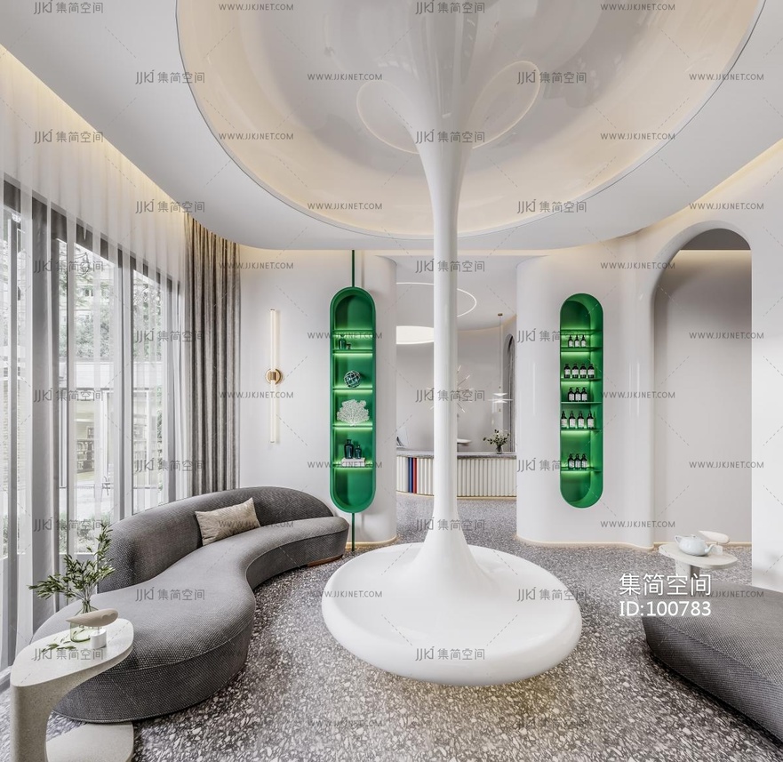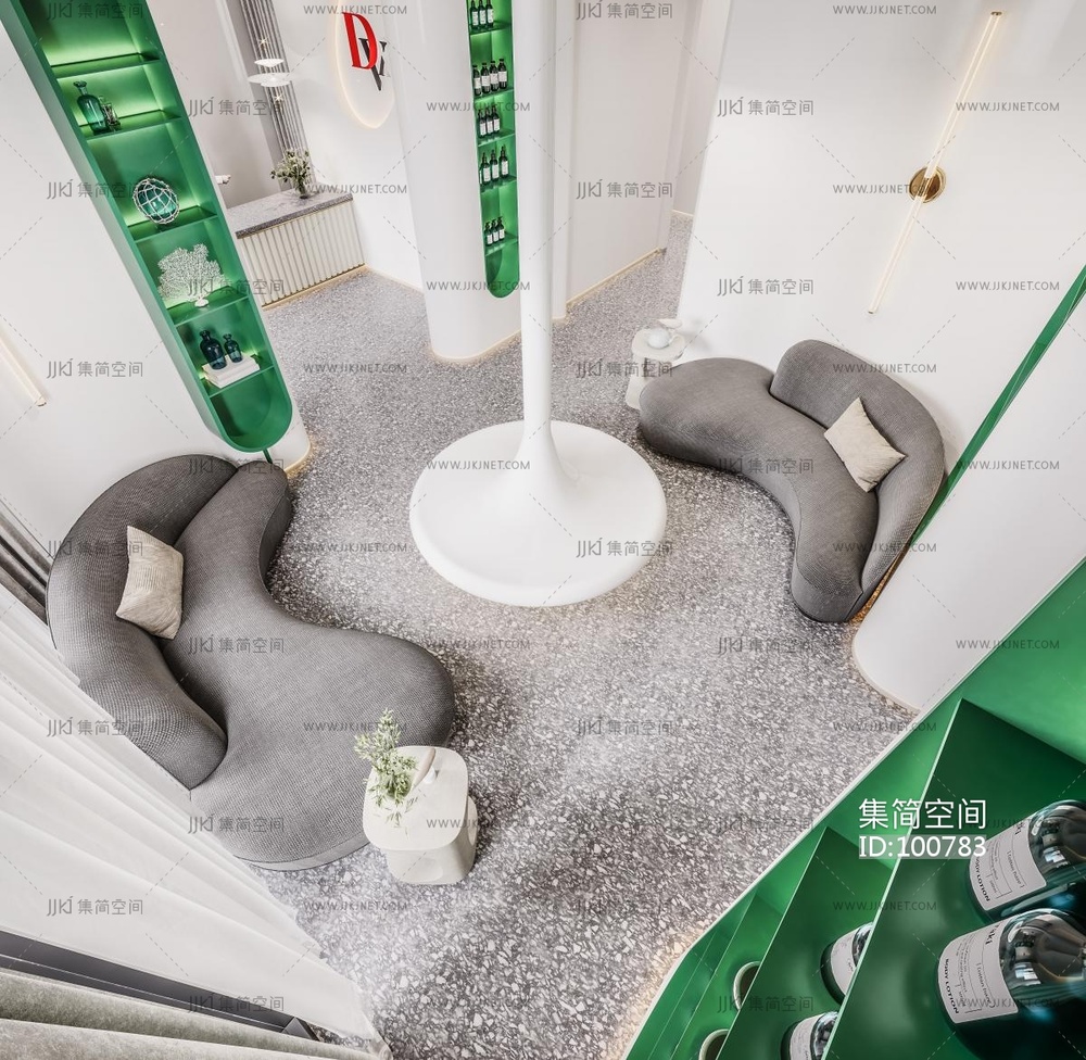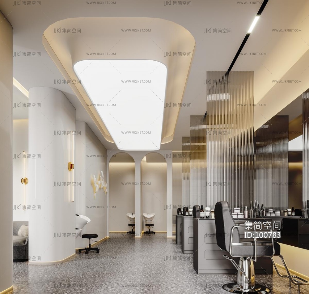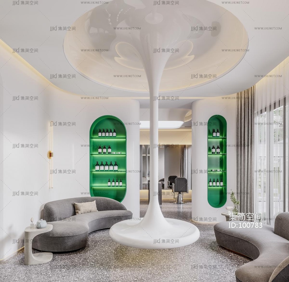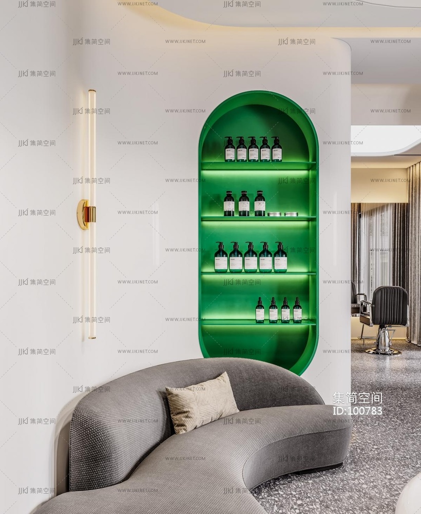 02_理发店,前台,接待台,休息区,异形沙发,壁灯,金属人物雕塑落地装饰灯,理发区,理发皮座椅,洗手池台盆,带轮子的圆凳,柜子,墙饰,立体花 3d模型下载 [模型ID:100783]