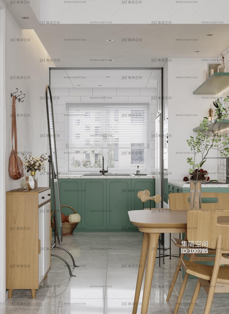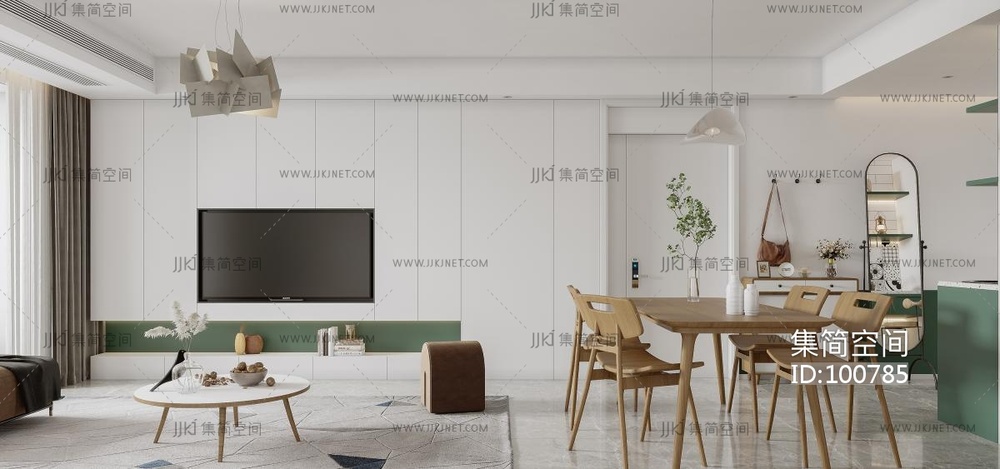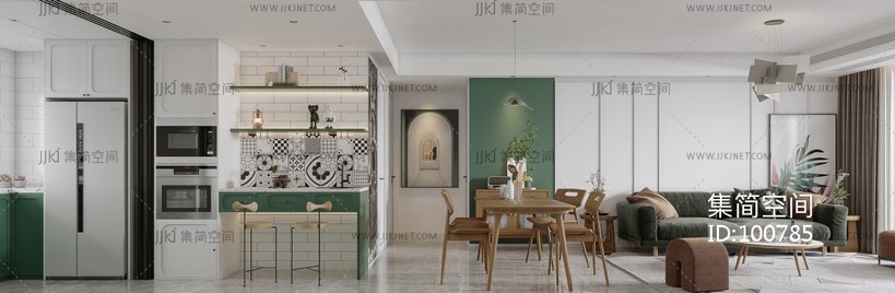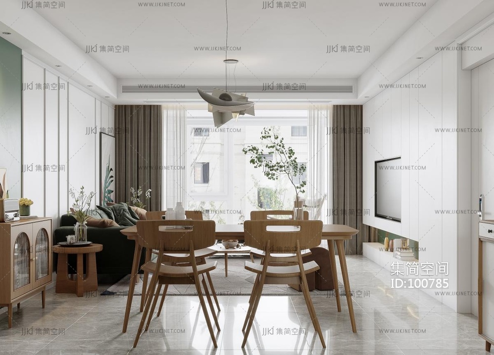 04北欧客餐厅 ,实木餐桌餐椅,沙发座椅,客餐厅吊灯,冰箱,微波炉,烤箱,边几,圆几,角几,茶几,挂画装饰画, 3d模型下载 [模型ID:100785]