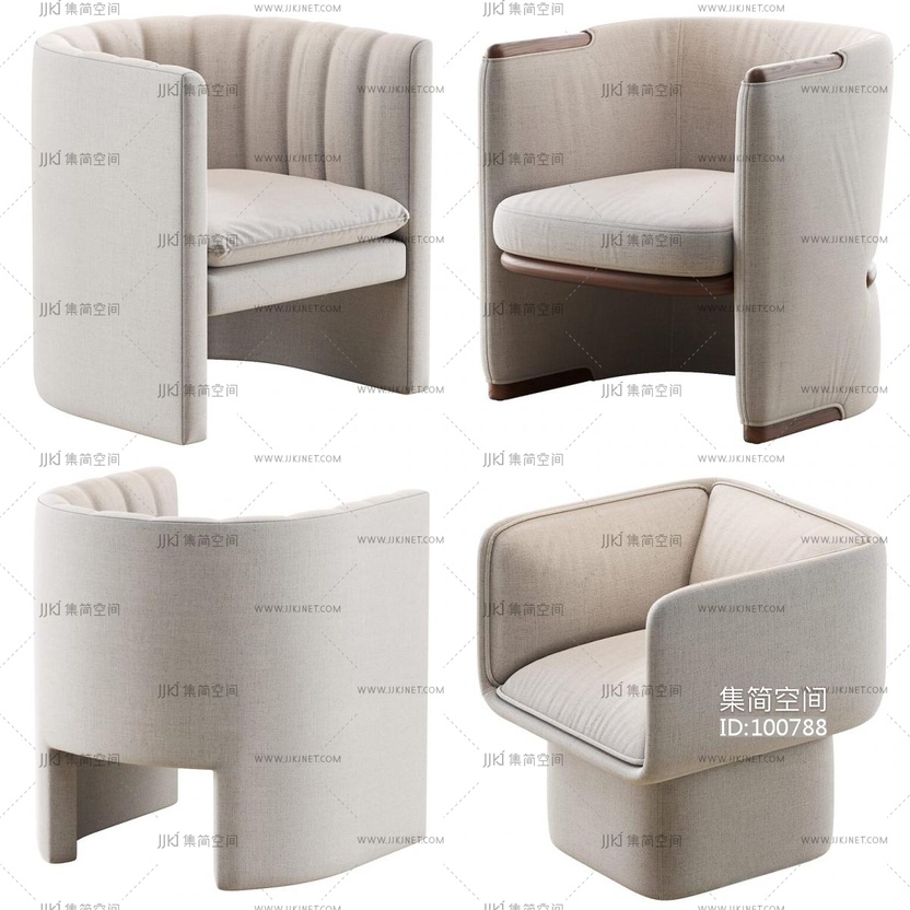 07Giorgetti 现代布艺休闲椅组合,单人椅,沙发椅,椅子, 3d模型下载 [模型ID:100788]