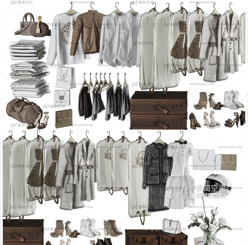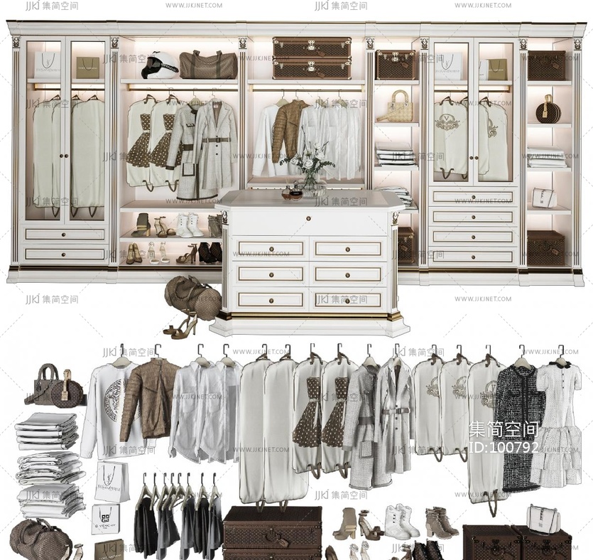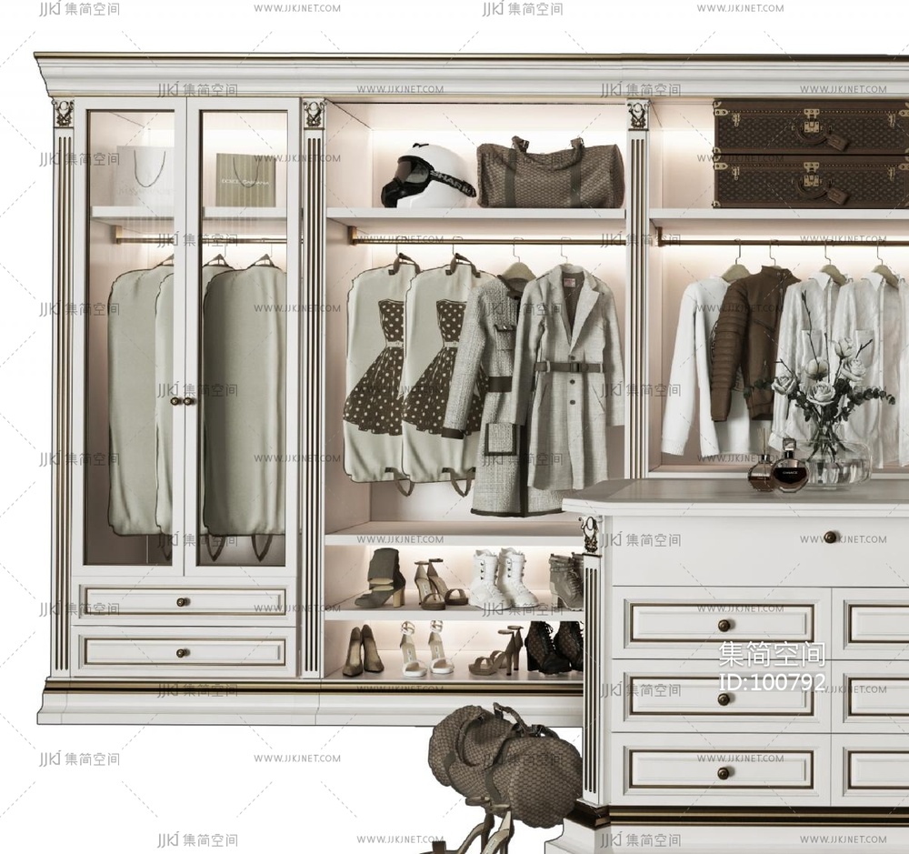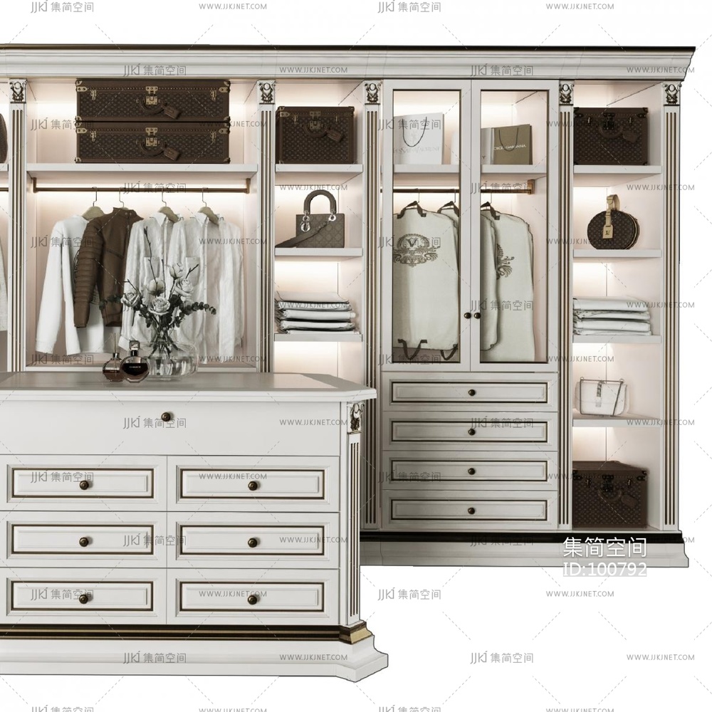 11简欧,欧式,轻奢衣柜,衣服,鞋帽,衣橱 (1) 3d模型下载 [模型ID:100792]