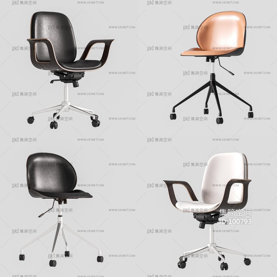 12现代办公椅,带轮子的可旋转的椅子,皮质座椅,布面座椅, 3d模型下载 [模型ID:100793]