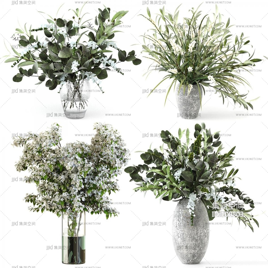 22现代玻璃花瓶花艺组合,绿植 3d模型下载 [模型ID:100803]