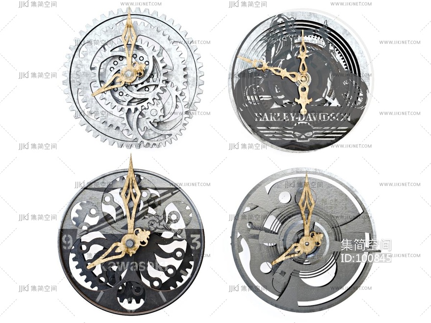 现代机械齿轮挂钟,石英钟, 3d模型下载 [模型ID:100845]