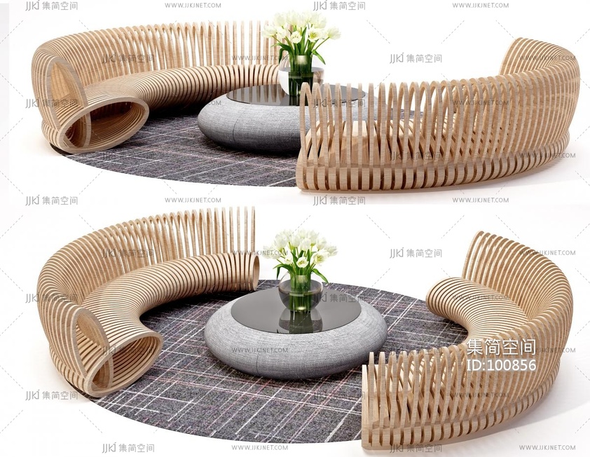 现代多人实木弧形异形沙发公共座椅 3d模型下载 [模型ID:100856]