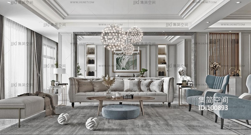 简欧美式法式轻奢客厅餐厅 3d模型下载 [模型ID:100893]