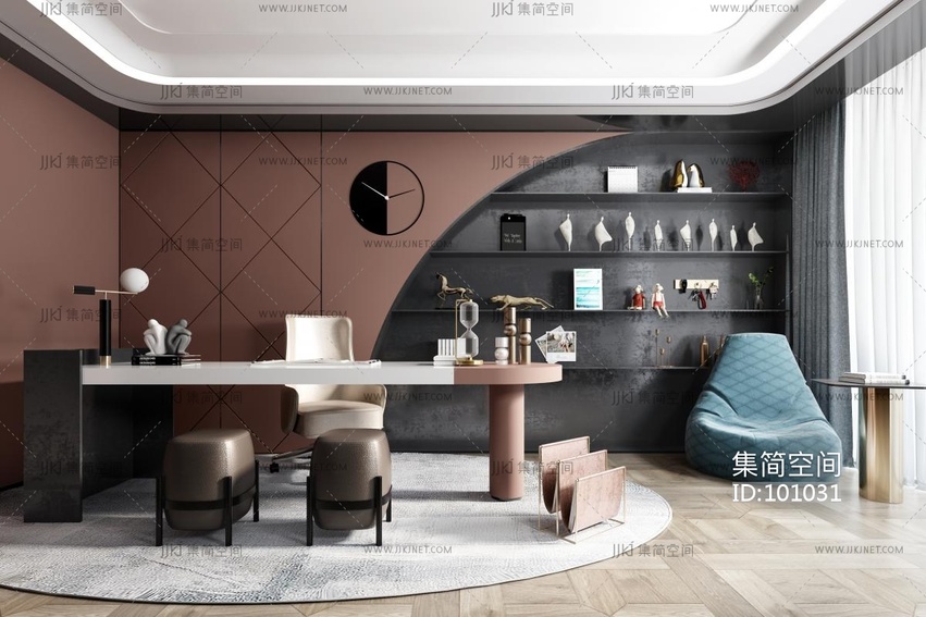 现代,书房 3d模型下载 [模型ID:101031]
