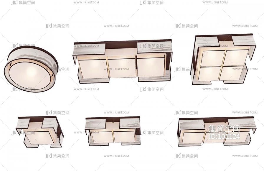 新中式山水画吸顶灯 3d模型下载 [模型ID:101124]