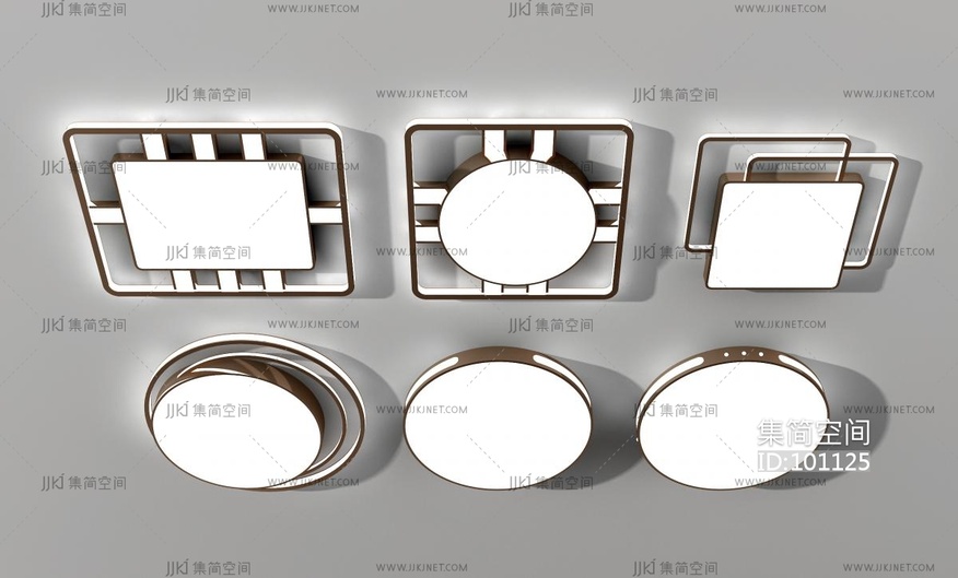 现代圆形方形吸顶灯组合 3d模型下载 [模型ID:101125]