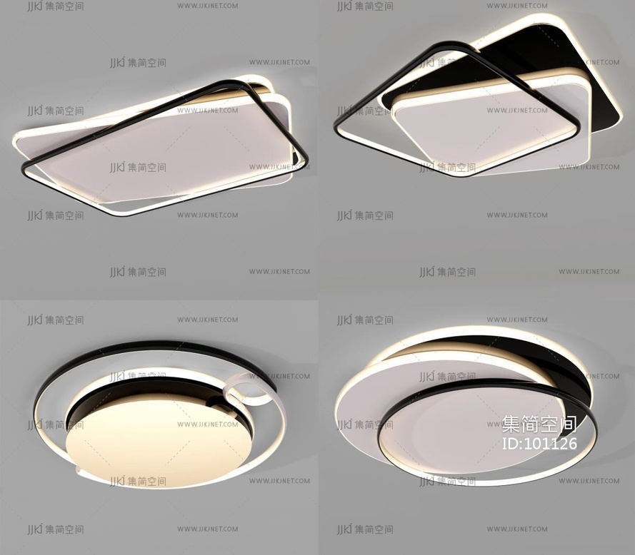 现代圆形方形吸顶灯 3d模型下载 [模型ID:101126]