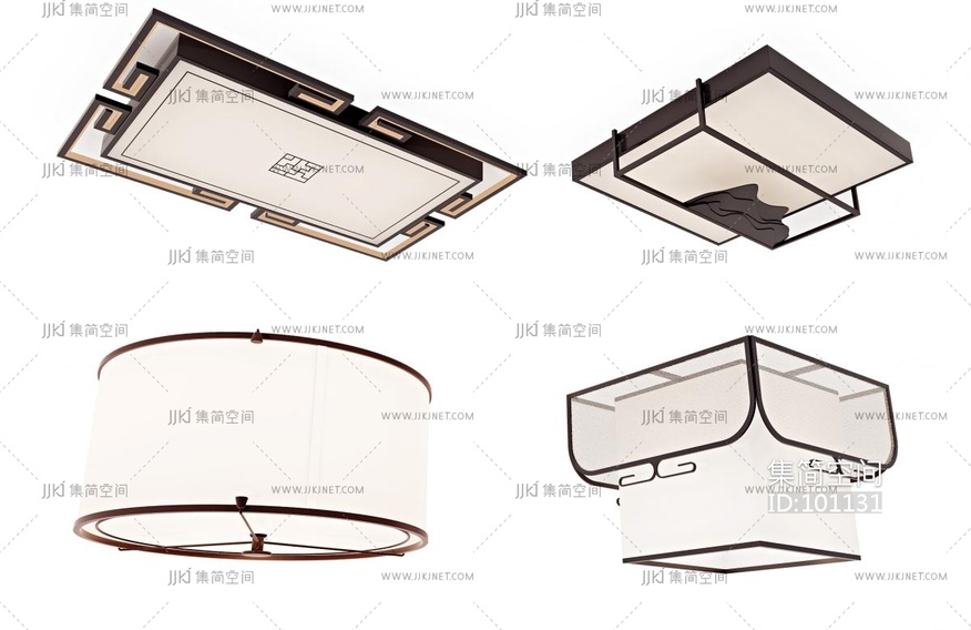 新中式吸顶灯组合 3d模型下载 [模型ID:101131]