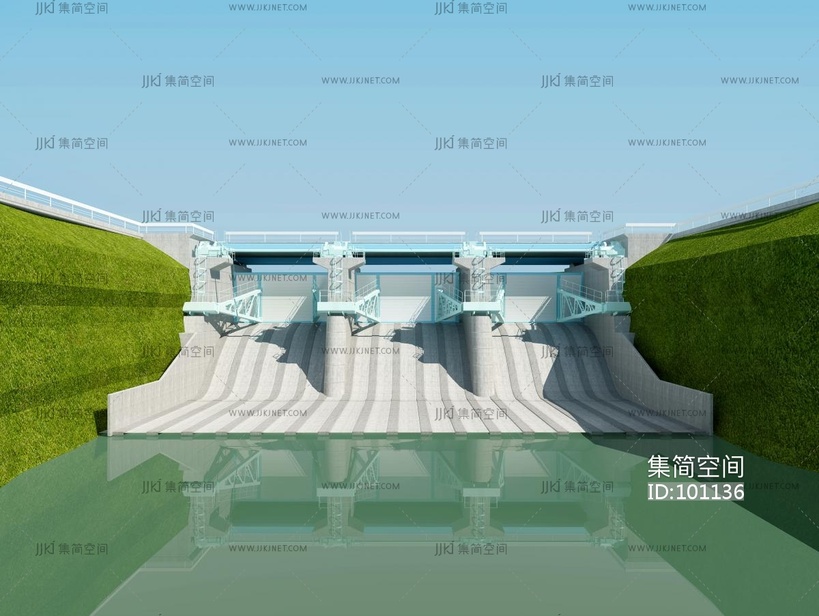 现代堤坝 ,水库 ,水闸 3d模型下载 [模型ID:101136]