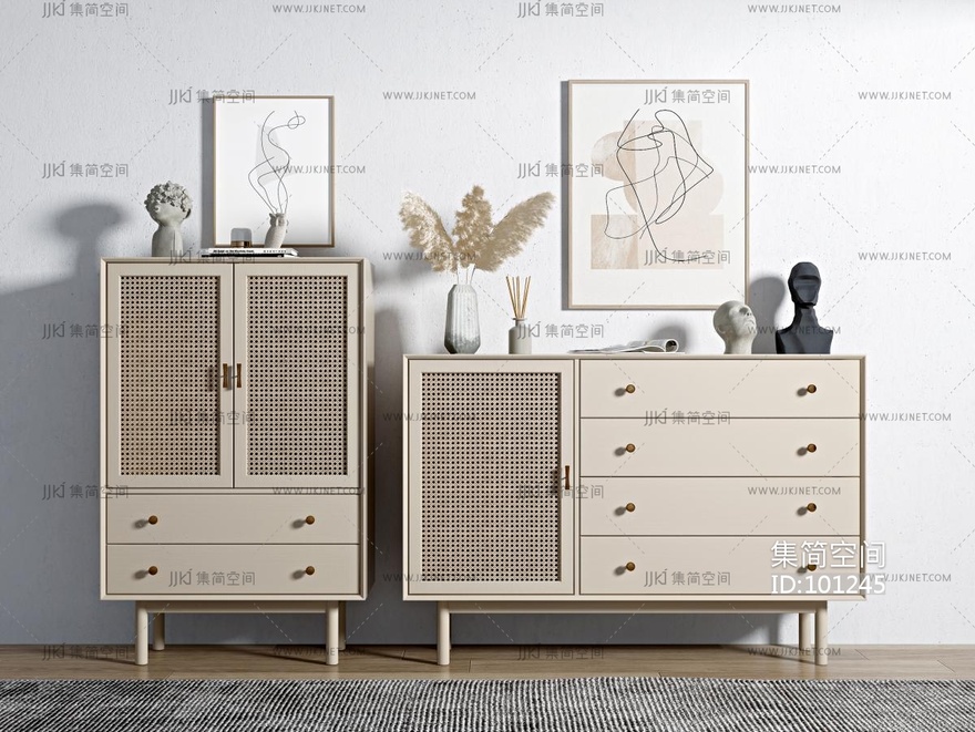 北欧餐边柜,装饰柜, 3d模型下载 [模型ID:101245]