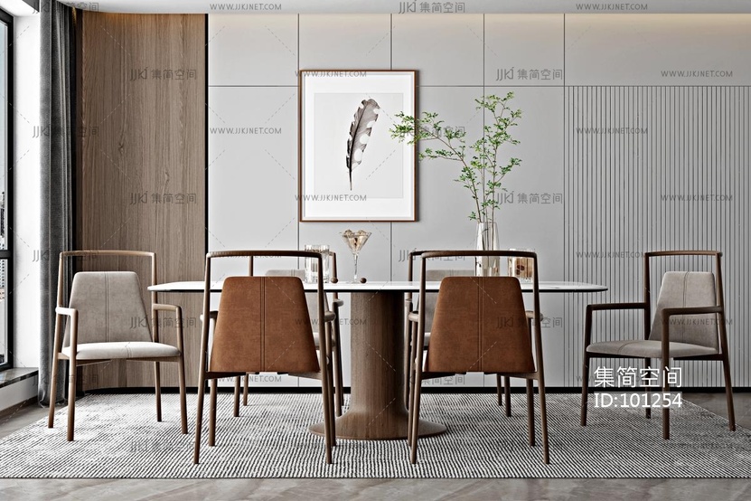 新中式简约餐厅 3d模型下载 [模型ID:101254]
