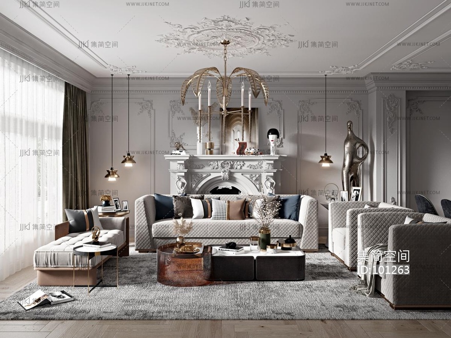 法式欧式轻奢客厅 3d模型下载 [模型ID:101263]