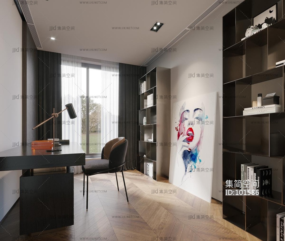 现代主卧书房 3d模型下载 [模型ID:101586]