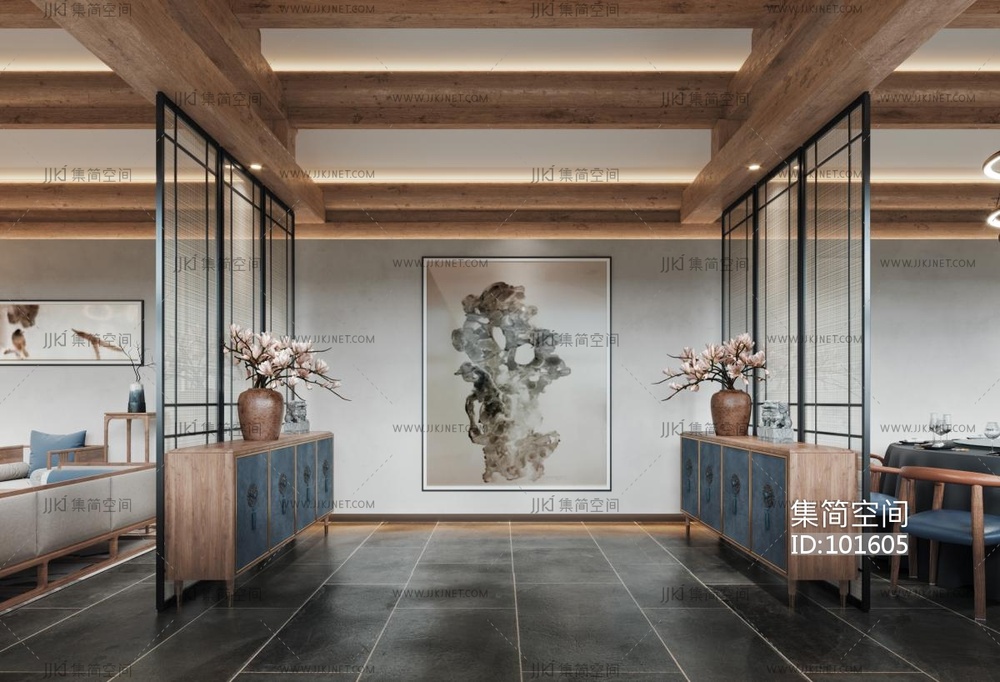 新中式会客厅 3d模型下载 [模型ID:101605]