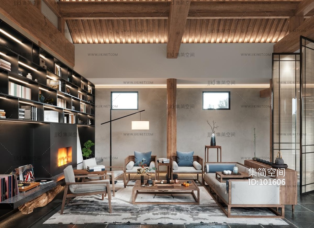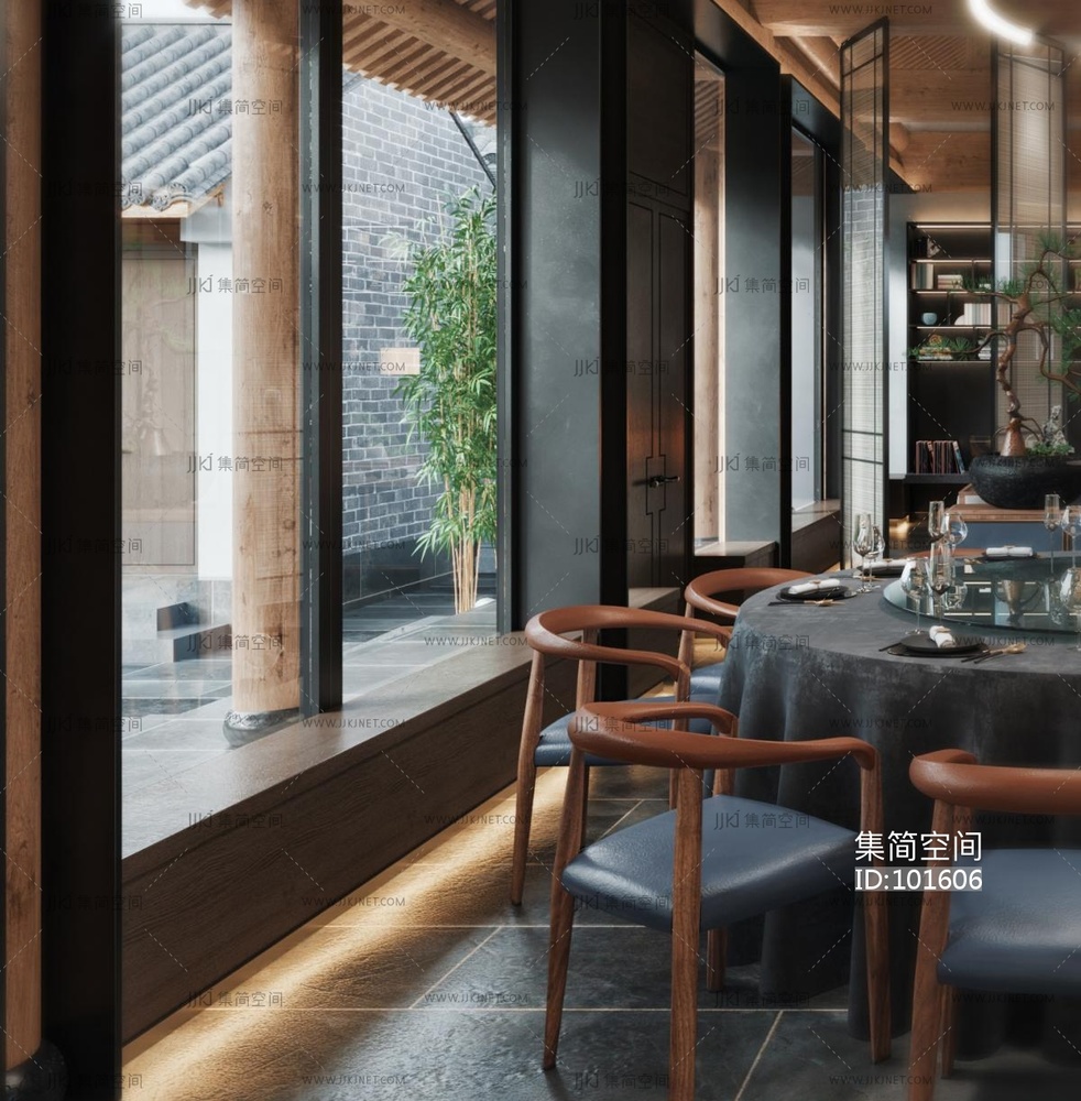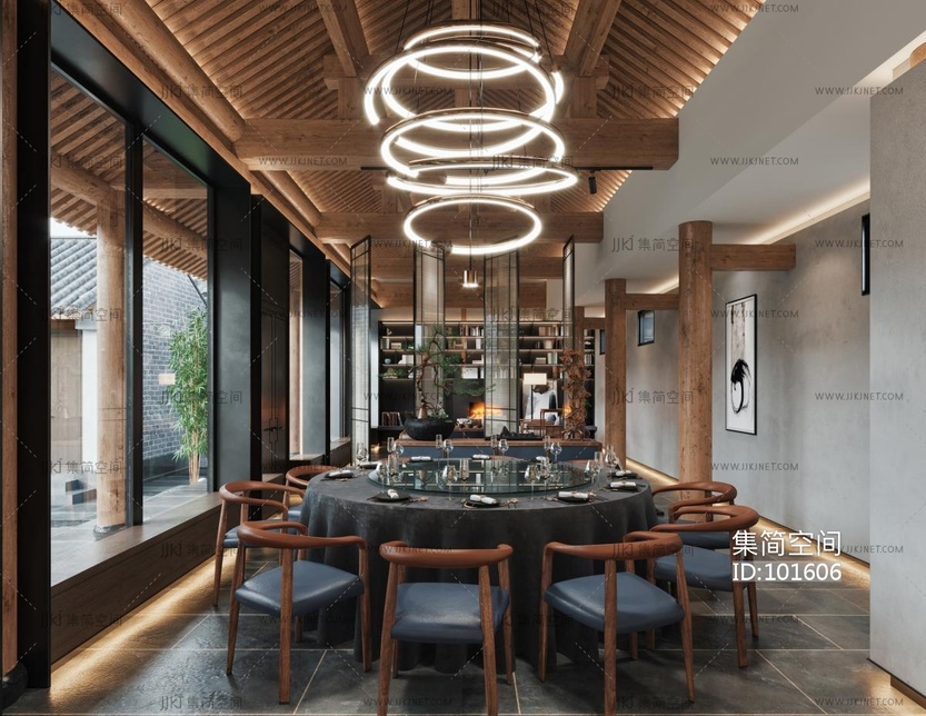 新中式酒店餐厅休息区 3d模型下载 [模型ID:101606]