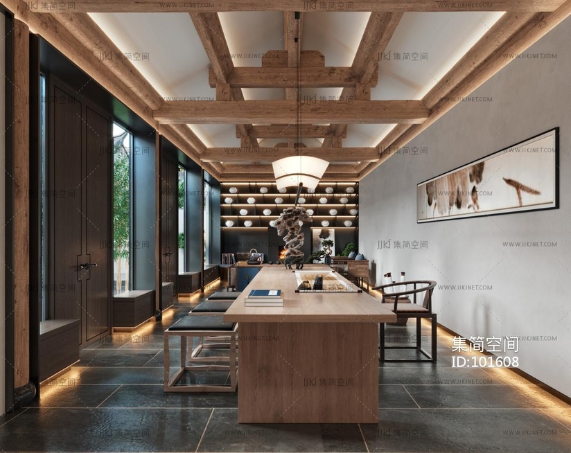 新中式茶室书法厅 3d模型下载 [模型ID:101608]