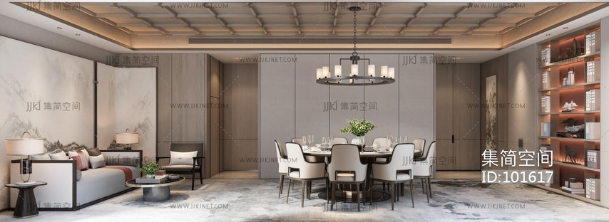 新中式酒店餐厅包厢,包间 3d模型下载 [模型ID:101617]