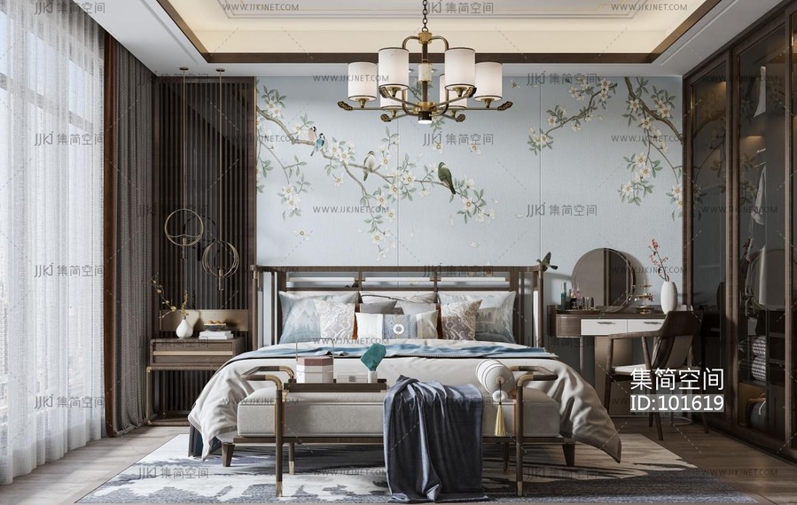 6法式中古家居卧室_主卧_飘窗卧室_高级灰卧室3D模型cr3d模型下载