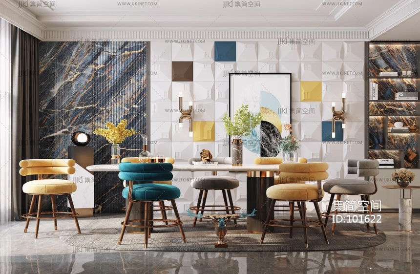 欧式古典餐厅古典雕花餐桌椅 3D模型3d模型下载