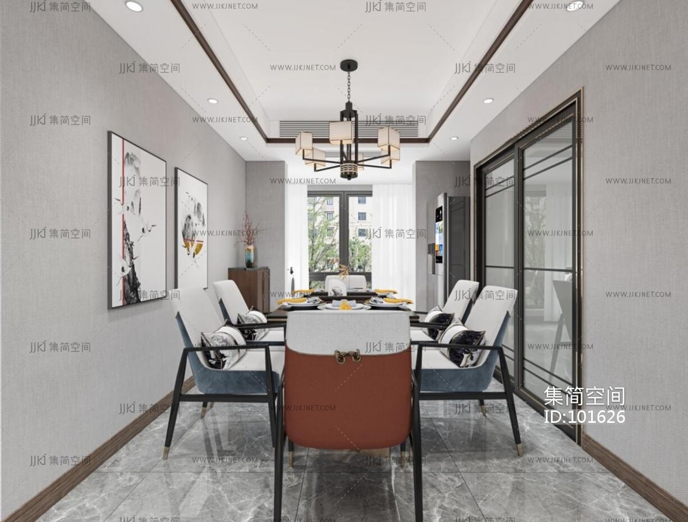 01新中式客餐厅,沙发餐桌椅 3d模型下载 [模型ID:101626]