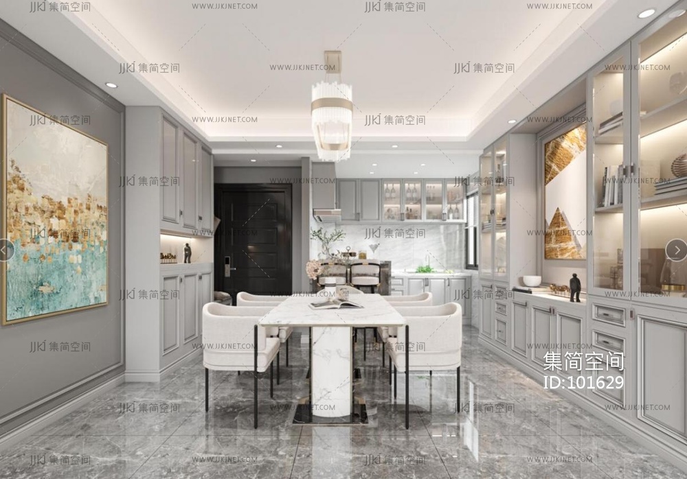 现代轻奢简欧式客餐厅 3d模型下载 [模型ID:101629]