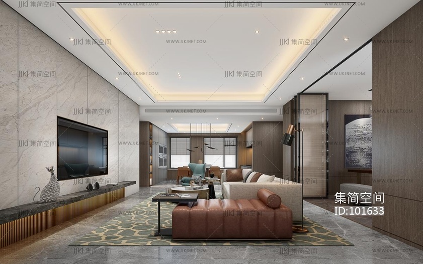 现代轻奢样板间客厅,沙发 3d模型下载 [模型ID:101633]