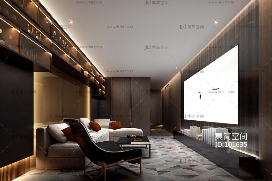 现代影音室家庭娱乐室 3d模型下载 [模型ID:101635]