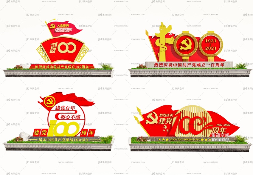 现代建党100周年文化宣传栏 3d模型下载 [模型ID:101703]