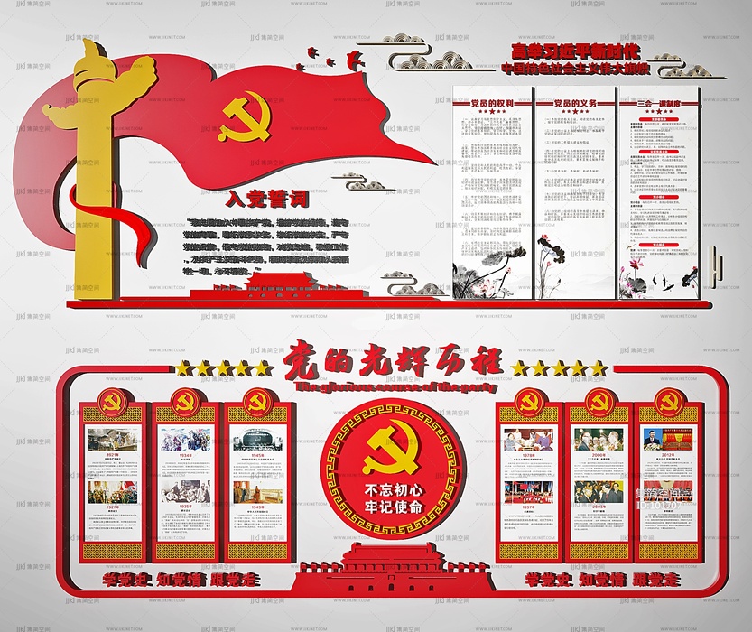 现代党政文化墙 3d模型下载 [模型ID:101707]