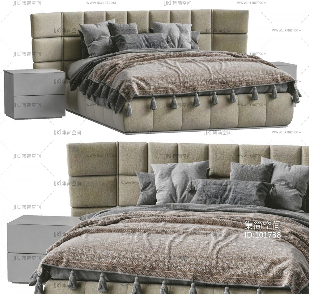 01-Colombomobili现代布艺双人床3D模型3d模型下载