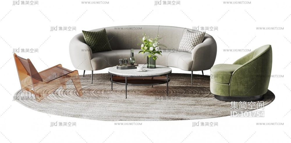 03-奶油中古沙发组合_沙发茶几组合_异形沙发_金属茶几_单人休闲椅_模块沙发3D模型3d模型下载