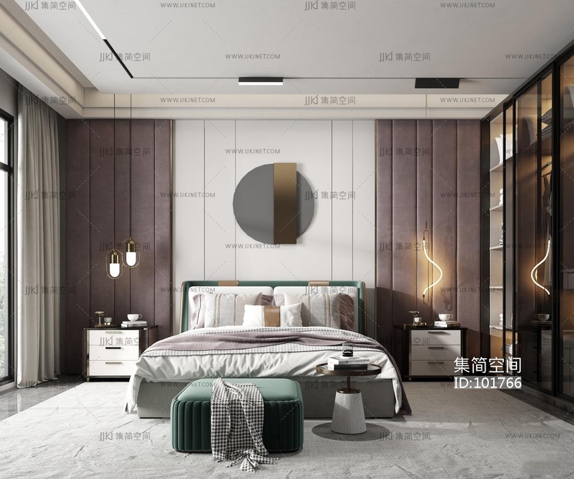 6法式中古家居卧室_主卧_飘窗卧室_高级灰卧室3D模型cr3d模型下载