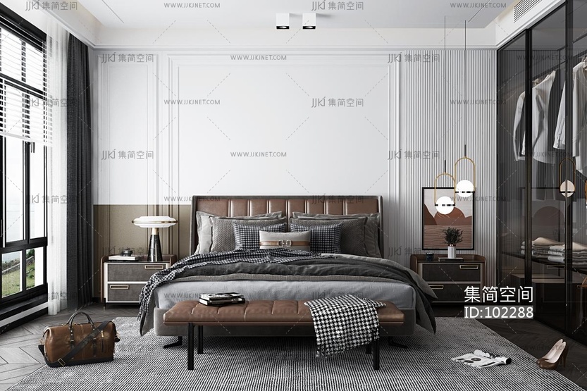 现代轻奢卧室 3d模型下载 [模型ID:102288]