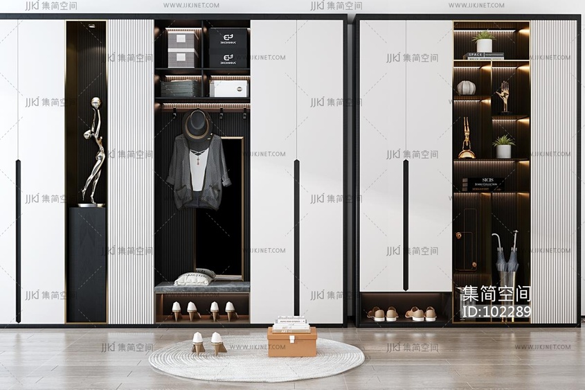 现代轻奢鞋柜衣柜组合 3d模型下载 [模型ID:102289]