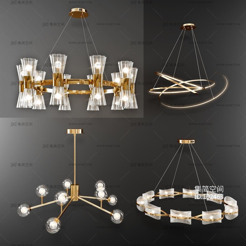 现代轻奢吊灯组合 3d模型下载 [模型ID:102463]