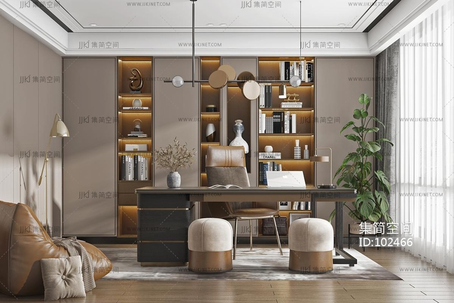 现代轻奢书房 3d模型下载 [模型ID:102466]