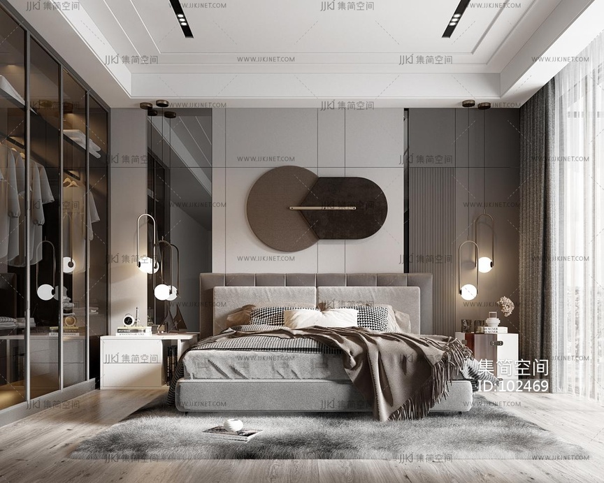 现代轻奢卧室, 3d模型下载 [模型ID:102469]