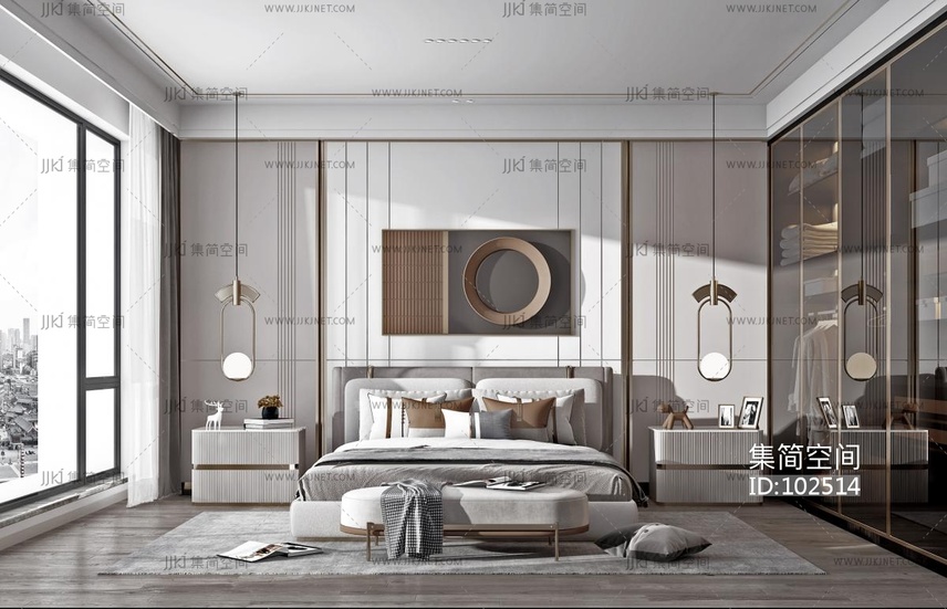 现代轻奢卧室 3d模型下载 [模型ID:102514]